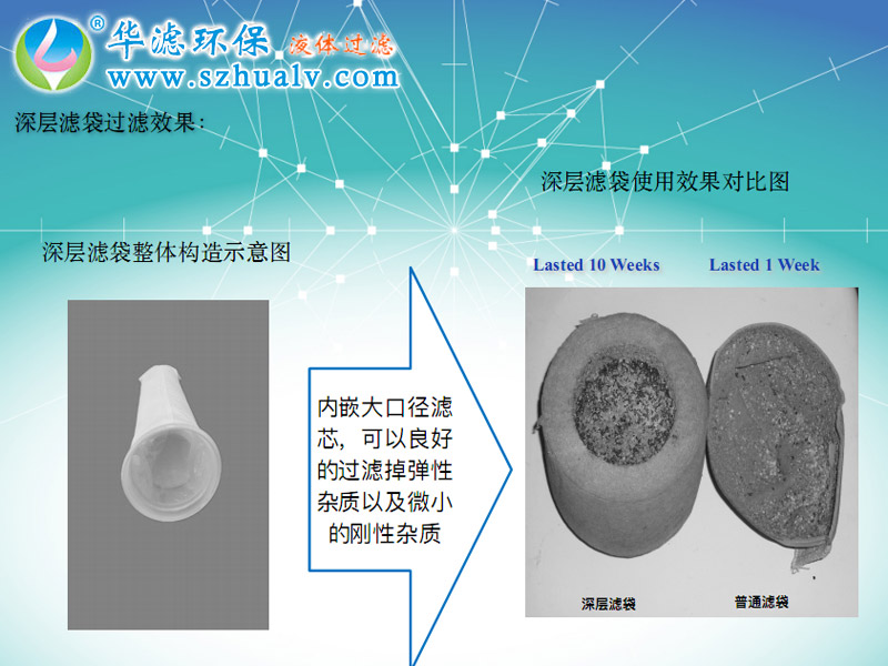 3.具有独特的深层网孔结构使滤芯具有较高的纳污能力;